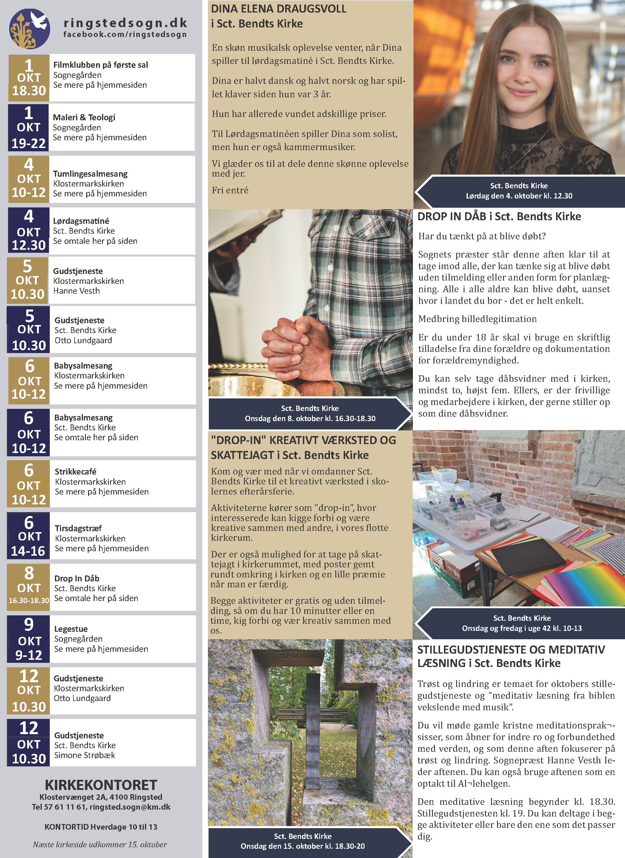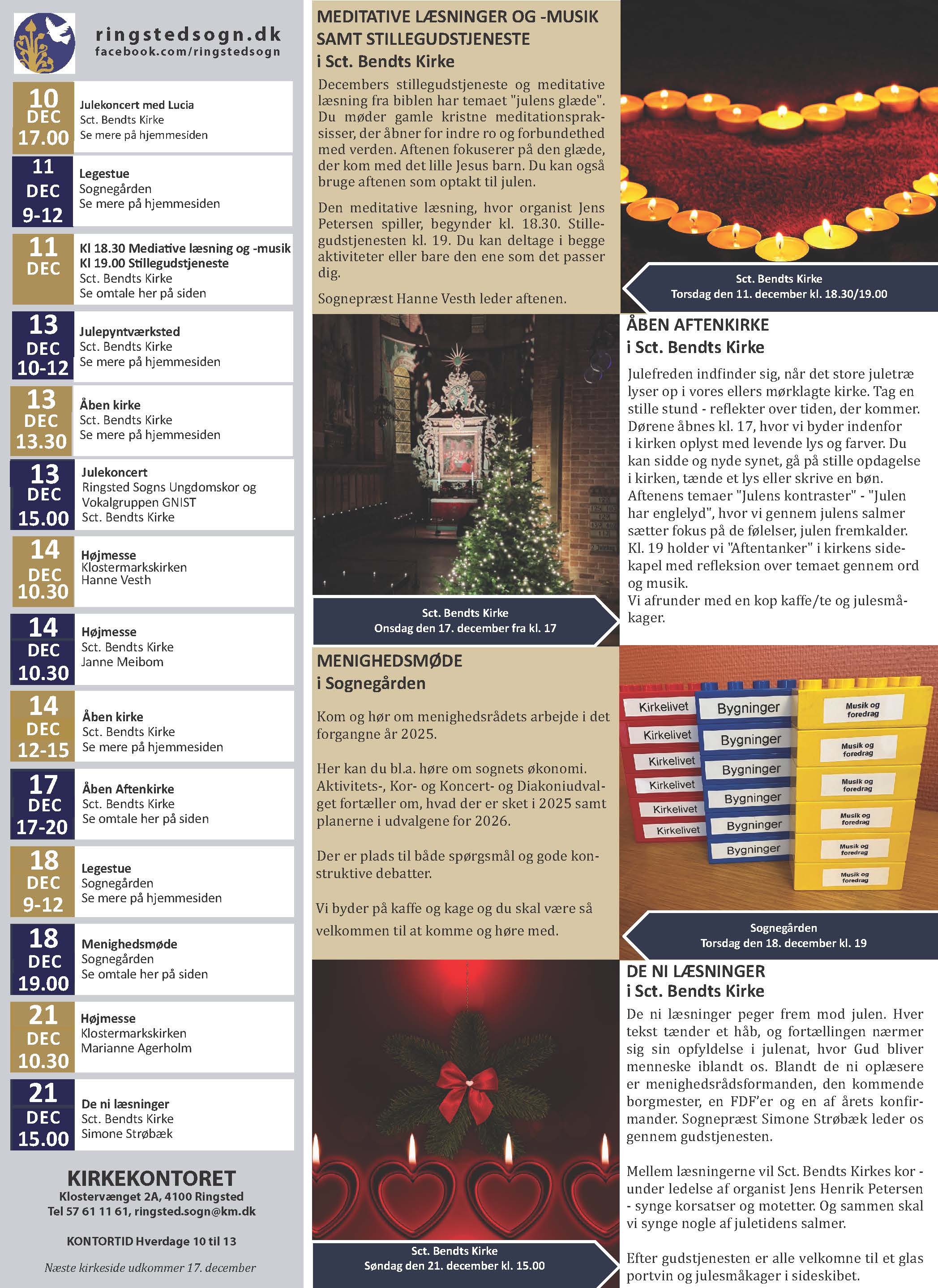 Hver måned udsender vi et oversigt over alle vores gudstjenester og arrangementer.