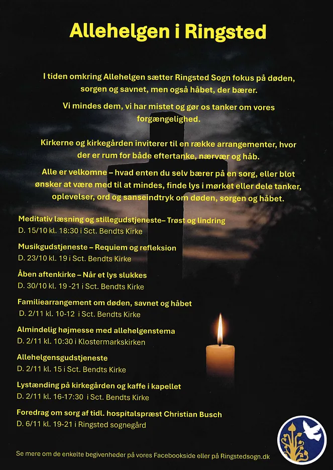 I ringsted Sogn har vi forskellige arrangementer og gudstjenster i forbindelse med Allehelgen, som du kan læse om her.